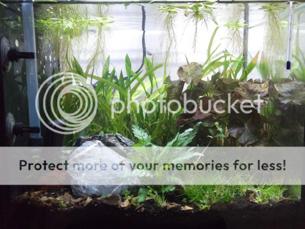 Spread 1/3 bottle of Mosura old sea mud on tank base, added 2 bags of CR in nettings. Filled up with roughly 1.8kg of Gex shrimp soil. Added a couple of charcoal tubes for shelter on right, boiled and laid 1 small piece of DW on the left, a few pebbles on the centre and planted tiny amounts of the Riccia and Eleocharis on the background.
