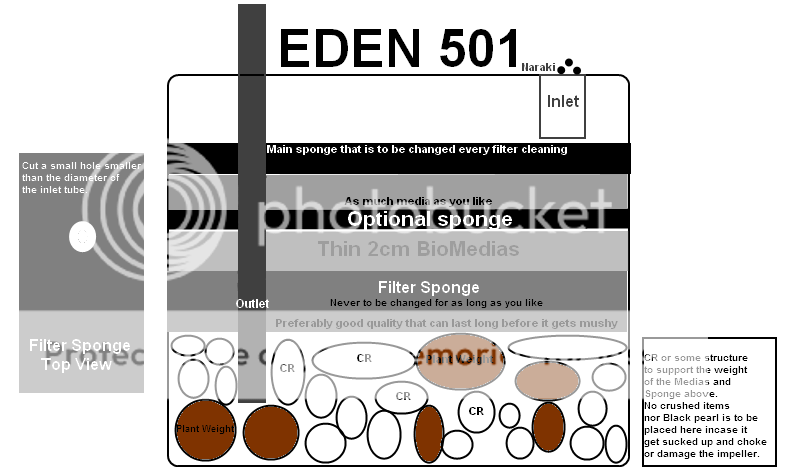 Eden is designed for small tanks (less than 1 feet) with low bioload. It choke up really fast even though I use it as biofilter in my 2 feet tank.