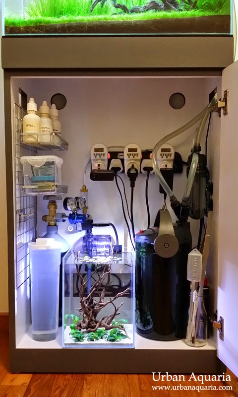 Most of the equipment i have are quite standard in most cabinet setups... ie. canister filter, Co2 tank system, in-line reactor, water top-up flask, maintenance tools, power strip, timers etc.