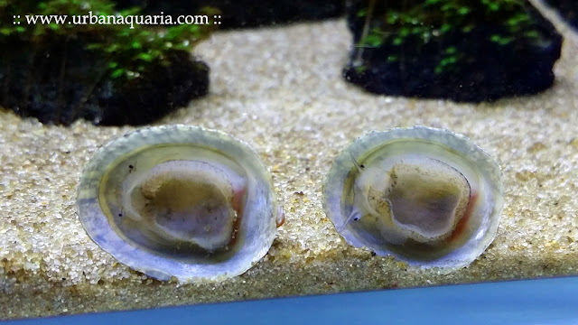 Still "hiding" in their shells... it seems to take them quite a while before they start moving, i had to prop them up against the tank glass to help them attach on.![]()