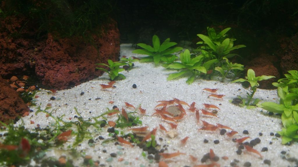 As I have only 2 tanks, what I am doing is keeping the fire reds in the shrimp tank to breed red ones, and put the Sakuras and lighter ones in the guppy tank, so if some get eaten its the less red ones that get eaten. And the guppy tank plants are getting denser as time goes by so higher chances of baby shrimp surviving.