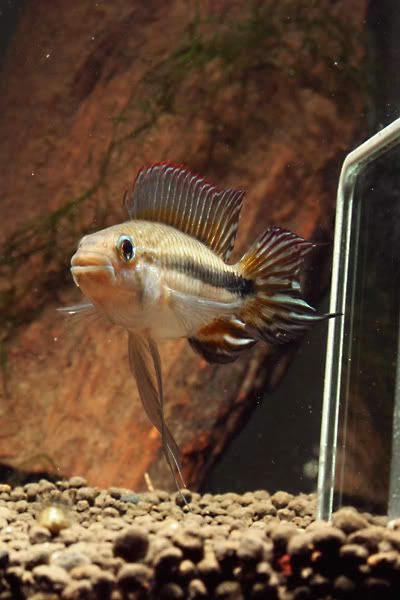 It's already a very mature adult. Very fierce towards other apisto but very skittish upon seeing me.