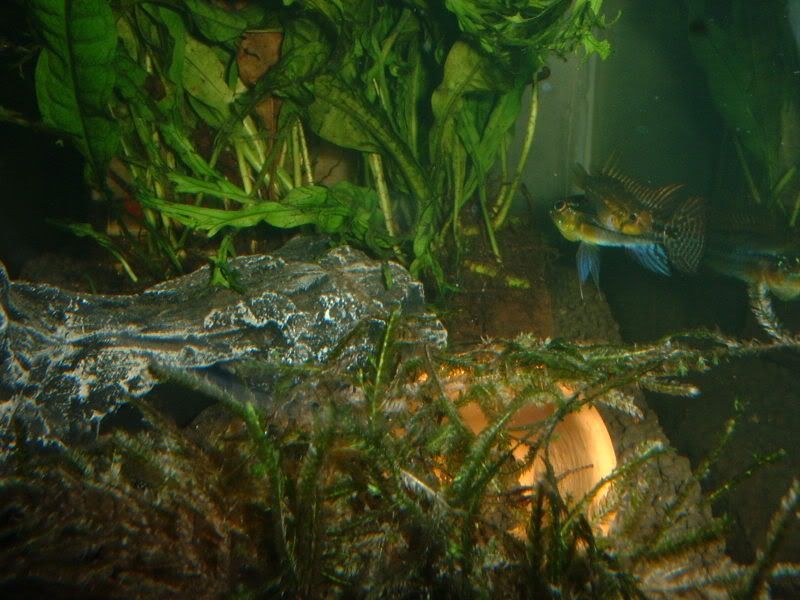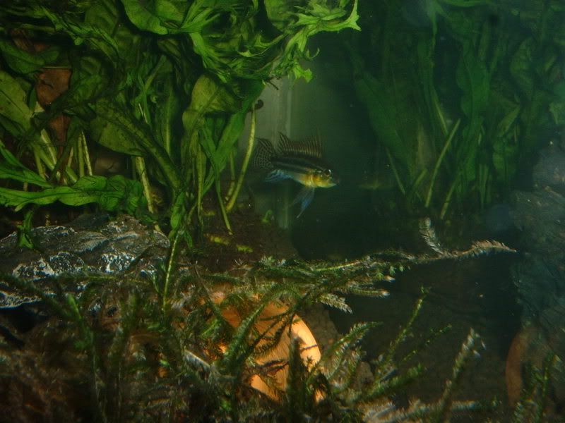 1 male Ap. agazissi (wild) replacement male for previous one that demised from popeye disease. This male is very agressive but never spawn despite the ready females.
