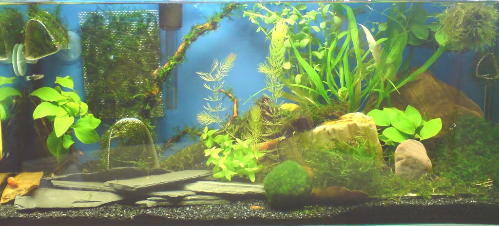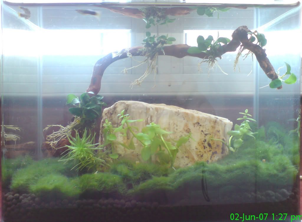 Anyway this tank, live stock are very hardy...only small hang on filter. No CO2, no fertilizer , no nothing