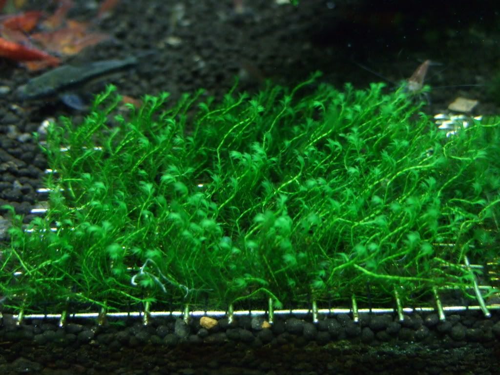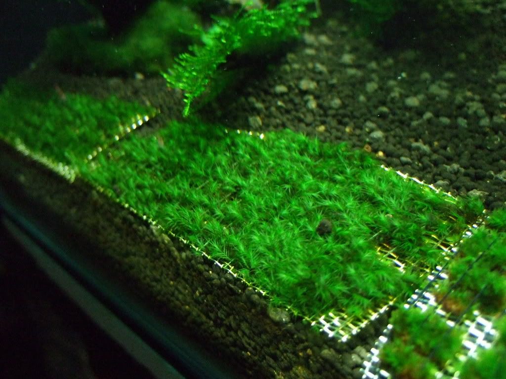 US fissiden on mesh.. made 3 piece and suctioned it to the back wall.. spiky moss grew long and became messy... new fronds is appearing after 1week