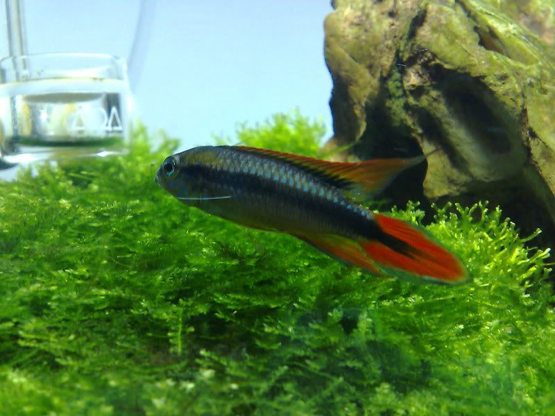 medium sized male in the big apisto agassizii red 'wild' tank right?