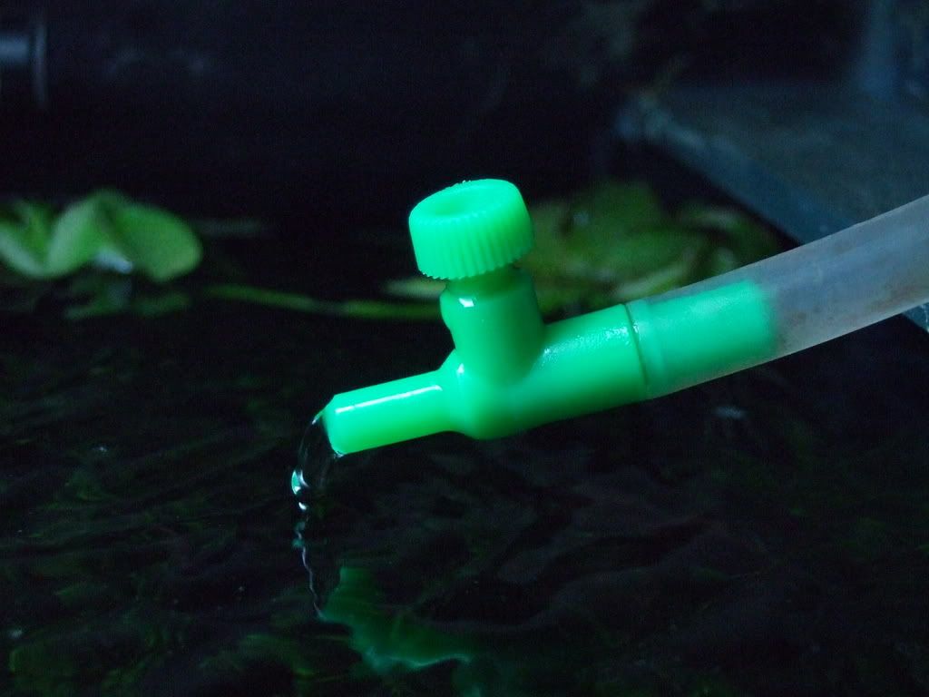 with the green thingy, you can control the amount of water coming out.. with little water slowly dripped into the tank. i believe water parameters will not changed as much as pouring 1 big cup of water straight into the tank.