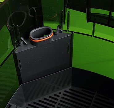 The overflow/first coarse filter "tray" is at the top of the filter, just under the pump head. Most crap will get trapped here first, so cleaning is much easier because there's no need to remove the rest of the media trays under until its really dirty.
