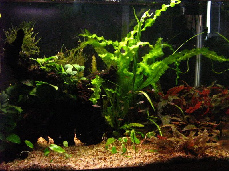 One of the things that brought me to this forum was the many threads that came up on the small rasbora species, mostly the boraras genus. I have a 20g up and running for 2 years. Its previous inhabitants were transferred to a larger aquarium, and I decided to restock it with species usually reserved for smaller systems. I currently have a small group of Hyphessobrycon amandae, and a mixed bag of boraras species. Oh, and add to that, 6 otos.