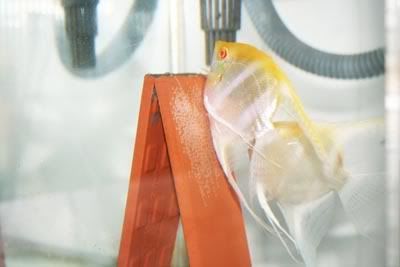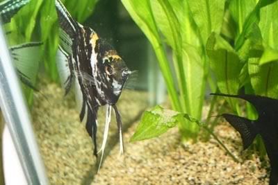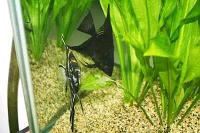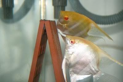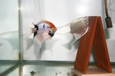 This pair of angels were grown up from babies last year. Their parents were from the pair which laid eggs on the bleach container as shown in the earlier pics. So they are actually brother and sister. Now they paired up and have spawned 5 times since Nov 08 last year. Sorry no baby pics as nothing really special to take pictures of....hahaha