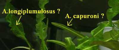 Switch the labels around and you got them right. A. capuronii seems to be strongly wavey when compared to the A. longiplumulosus. The plant you have pictured definitely looks like A. capuronii.