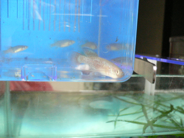 This fish is fierce. Put it in a container and it will keep jumping. When he saw another male that he can't attack, he attack his wife instead.