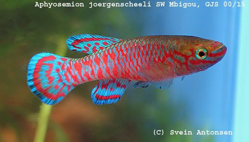 Aphyosemion joergenscheeli "SW Mbigou, GJS 00/15"I got these species from mr. Mogens Juhl in April. They are fish from a collecting Mogens did in Gabon, I think it was in 2003.