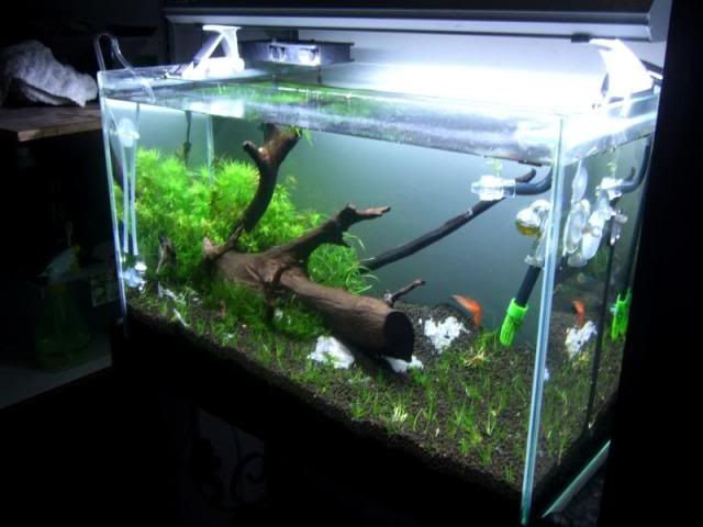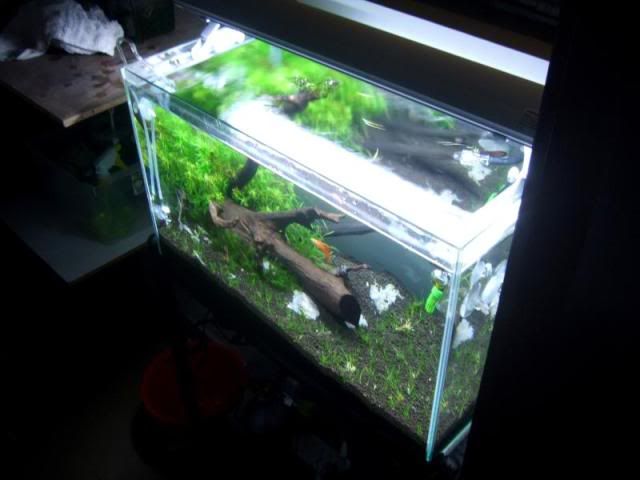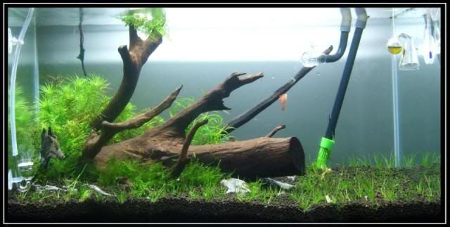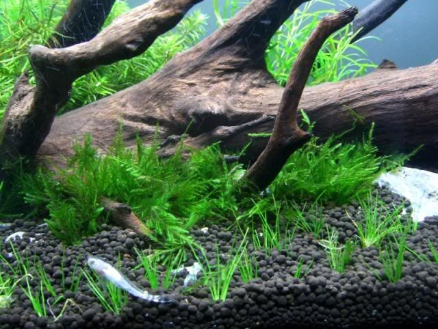 i have added an instant lawn of xmas moss around the wood(inserting fronds into the gravel) i hope that add points to the scape.