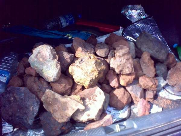 every trip we figured we can take 200kg of the rock...and so far we went 3 times...so that's about 500-600kg! i split those rock we collected in few places, some in my friends house.