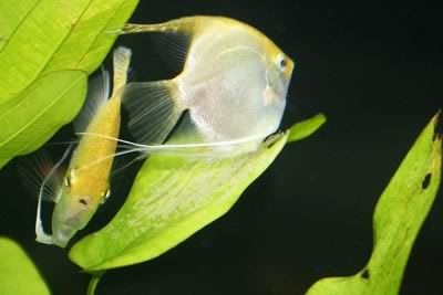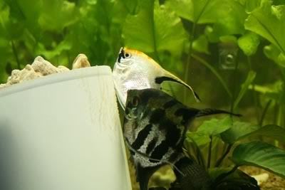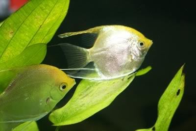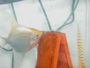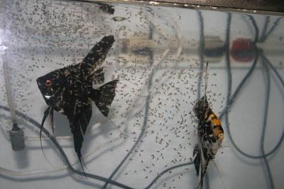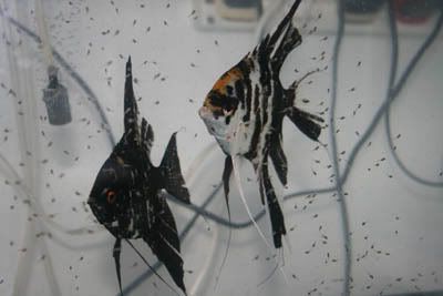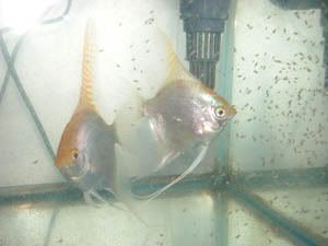 The pair of angels with their free swimming fry