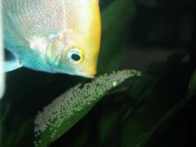 Male and female angels laying and fertilising the eggs