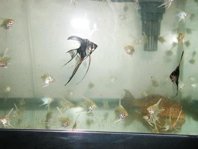 Marbled Angel Family Story.... The male was from another pair of angels which bred and it grew up to be more than 2yrs old. The female was bought from LFS. Pity the male has died recently due to the bad water issue.