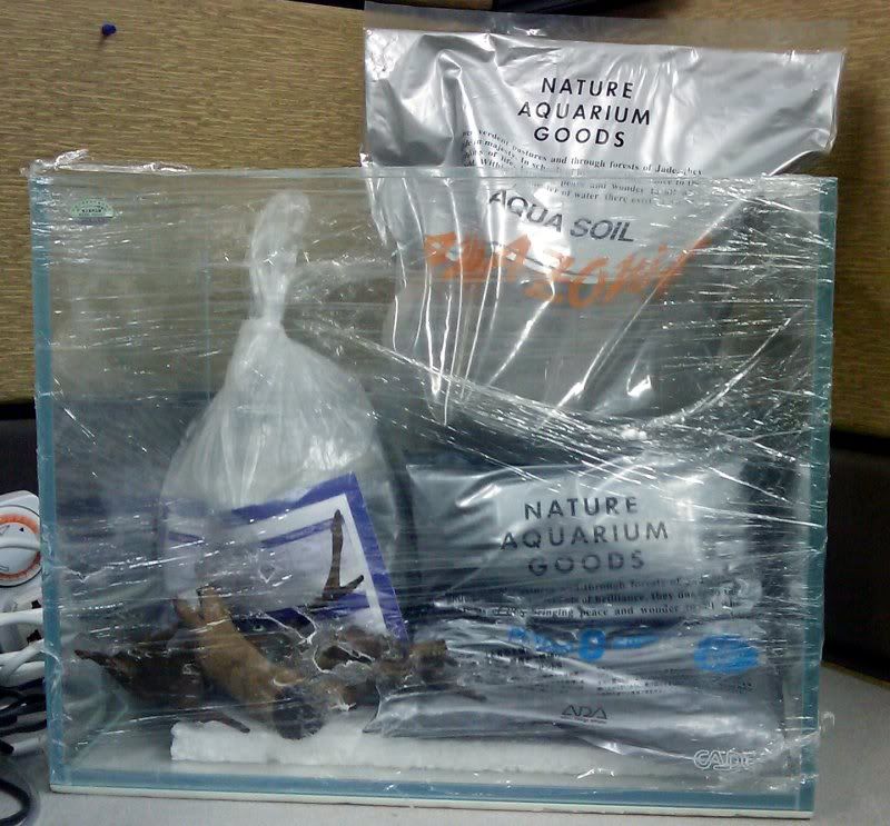 I've been rather inactive lately due to real life catching up with me. The crystal glass tanks at Aquarama tempted me though, and I ended up ordering one from Mizuworld to set up in my office