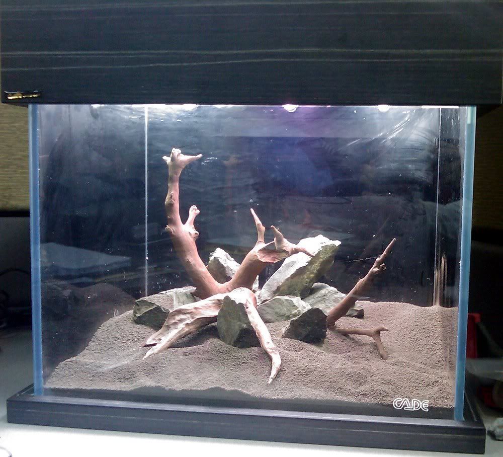 Light wise, I understand your concerns...but 3 arcadia pods isn't alot for a tank of this size. I used 2 arcadia pods on a 30cm cube, and it was sufficient for a high tech tank. This tank is 1.5x the length so a 3rd pod was needed...and it's deeper than the 30cm cube (36cm deep) so the light is actually weaker at the base. This tank has CO2 as well pumped in via a diffuser, which I just installed today. I've always believed in lower wattage spread out over a wider area instead of just an intense strip above the tank