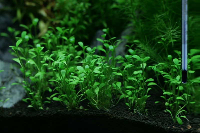 Actually it's ok if it's growing upwards. If you don't have enough glosso, just trim 1 stem with 2 leaves, then plant it some where else. The newly cut plantlets will survive. In short, it's an economic way to grow glosso, even though it's kinda slow.