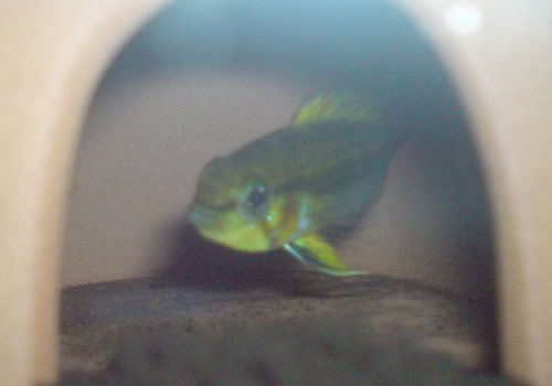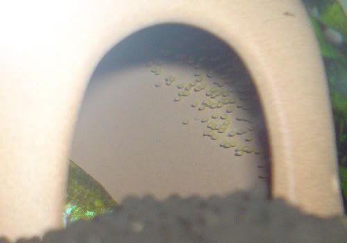 She did not leave the cave except to feed on some live brine shrimp, and I was noticing that she was cleaning the inner surface of the cave. She piled up some of the gravel from the bottom of the cave and dropped them bit by bit just outside the cave. But I did get a pleasant surprise as I turned my handphone: