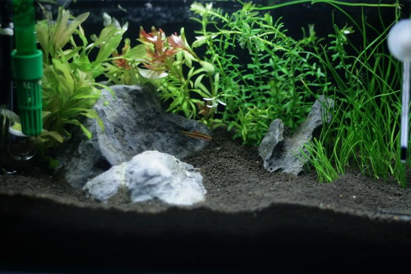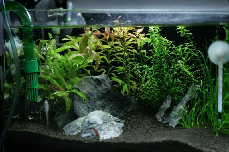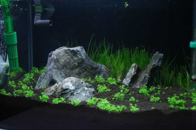 isn't the flow rate of eden 501 and eheim 2211 the same? Anyway, nice nano scape.. it would be quite nice if the hc manages to carpet.. by the way perhaps you should remove the duck weed because it will block the light from the light hungry hc, which may cause the hc to grow upwards