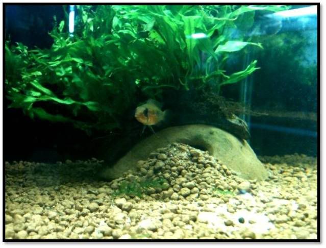 The next day, i saw this huge pile of gravel stacked(the one in the picture), and i assumed the pair might have spawned again. I wasn't sure if the mum still recognized her babies after the period of absence. I too, decided to remove the male after the female became extremely ferocious(much more aggressive than usual).