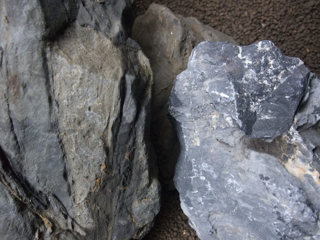 After wetting the new rocks, they do look dark enough to blend in but these new ones had much sharper edges and more white veins in them.