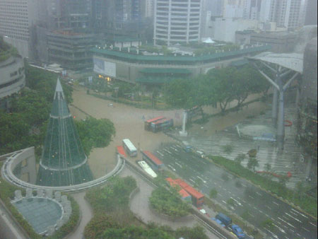 Its a combination of high tide and heavy rainfall... and possibly blockage from all that digging for the MRT lines.
