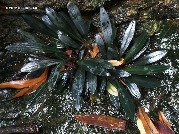 mini catherineae (in a small clump), compared to the size of adult's index finger. This is definitely one of the smallest Bucephalandra ever found. And a very beautiful Bucephalandra variant.
