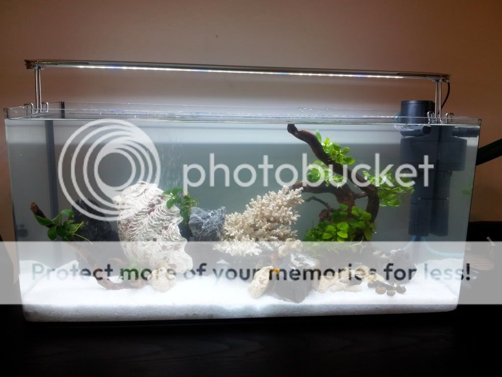 I'm intending to add a thin later of coral sand on top of the white quartz. I wanted Sula rocks but don't know where to get them though. Yes I do give my shrimps good hiding places. So good that I don't usually get to see them. HAHA. My new tank is under going scaping so I'm gonna update with pics later on as I add things. I put in the corals first so that I can monitor the water parameters with it. Will be adding in another branch with plants tied to it.